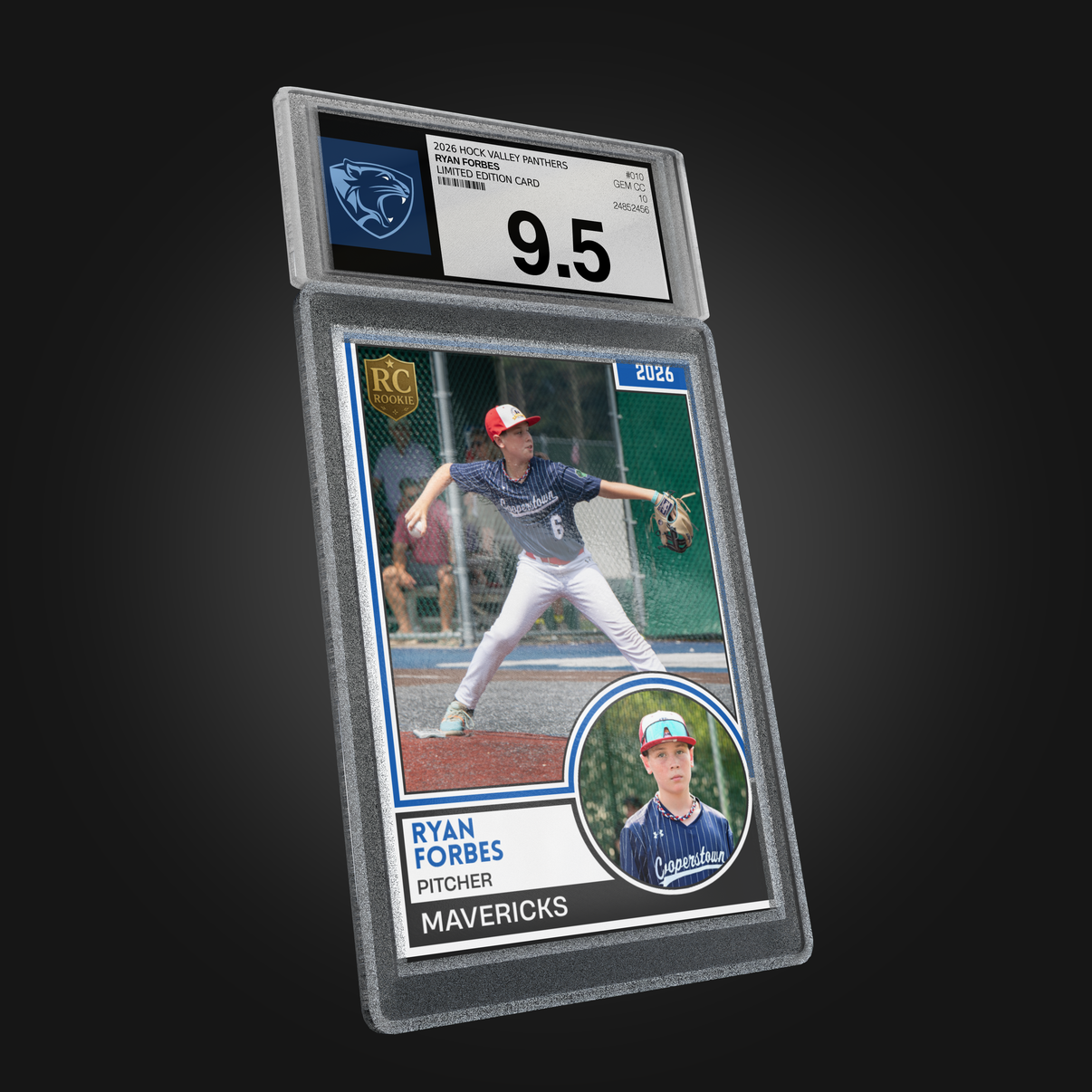 Rookie-style collectible card design inspired by professional sports cards